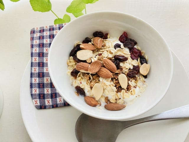 グラノーラのように、はちみつ、過剰な量のドライフルーツをトッピングすると、カロリーも糖質も大きく上がってしまうので注意が必要です。