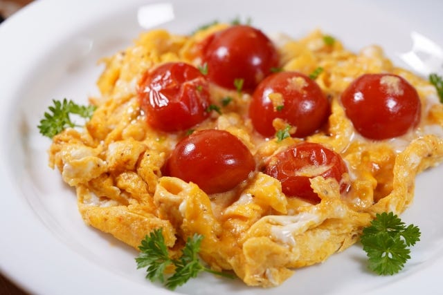 栄養士さんからのコメントトマトからはリコピンやビタミンCが摂取できます。卵からは、良質なタンパク質を摂取できます。