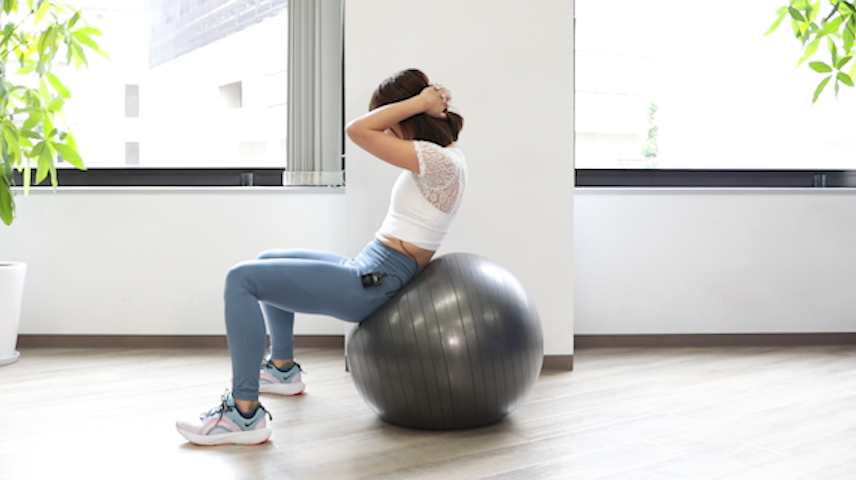 今回は例として、腹筋を鍛えるバランスボール・クランチを解説します。