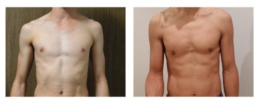・鎖骨が一文字にまっすぐ ・筋肉量が体重の25~30%ほどしかない