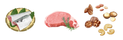 この栄養素が豊富な食品 青魚 牛肉 豚肉 卵 ナッツ類 など