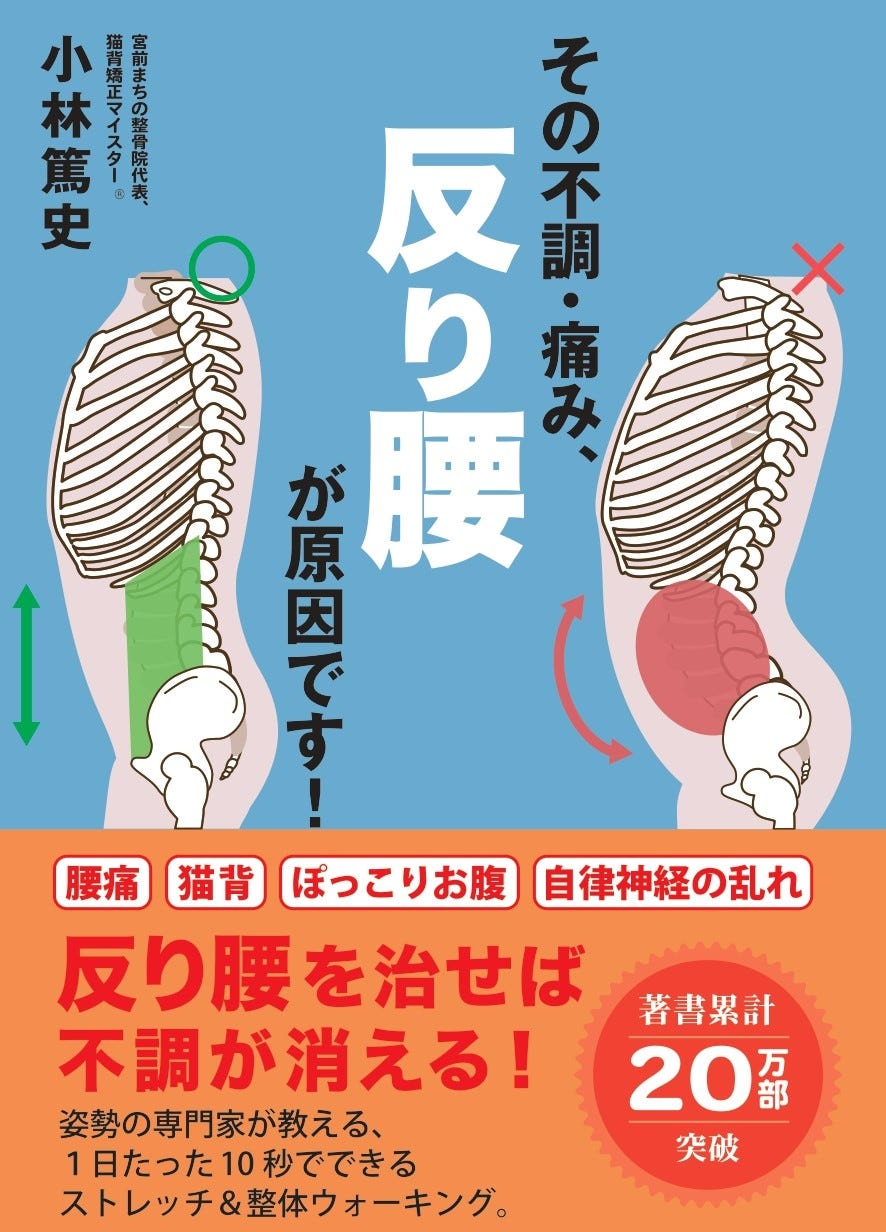 猫背矯正マイスター®︎で、宮前まちの整骨院代表小林篤史さんの著書『その不調・痛み、反り腰が原因です!』から、反り腰セルフチェックや10秒でできるストレッチなどを紹介します。