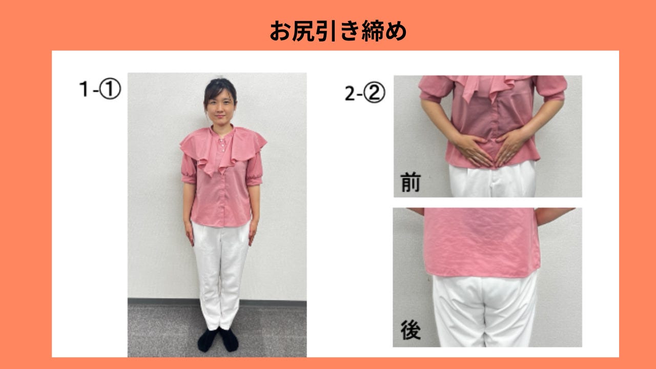毎朝1回、たったの10秒。目を閉じて行うとお尻の筋肉に意識がむき、力を入れやすくなります。