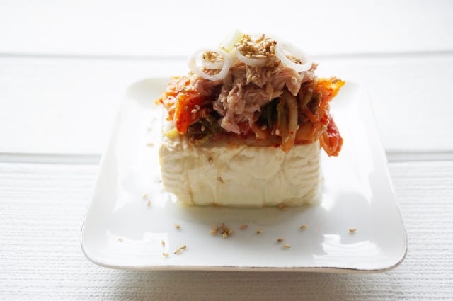 ダイエット効果がアップする「豆腐+キムチ」「キムチに含まれるカプサイシンはアドレナリンを活性化させ、血行や発汗を促し脂肪燃焼に効果的! キムチチゲなど温かい鍋や汁・スープなら食事誘発性熱産生も高く、エネルギー消費量が増えます。豆腐のボリュームと汁ものでの満足感の高さはダイエット中におすすめです」(深野さん)