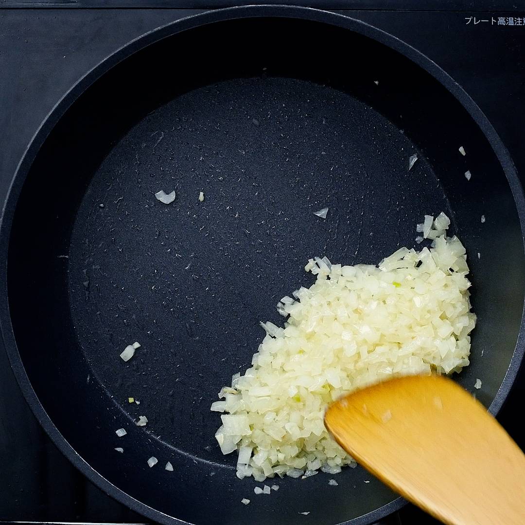 玉ねぎを炒める際は焦げないよう弱火でじっくり炒めてください。