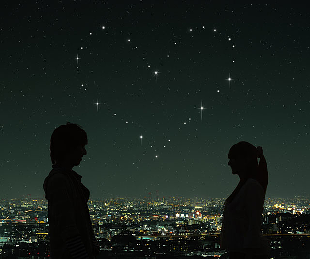 2人の間にある花束とリボンがこの男女の恋の成就を約束しています。