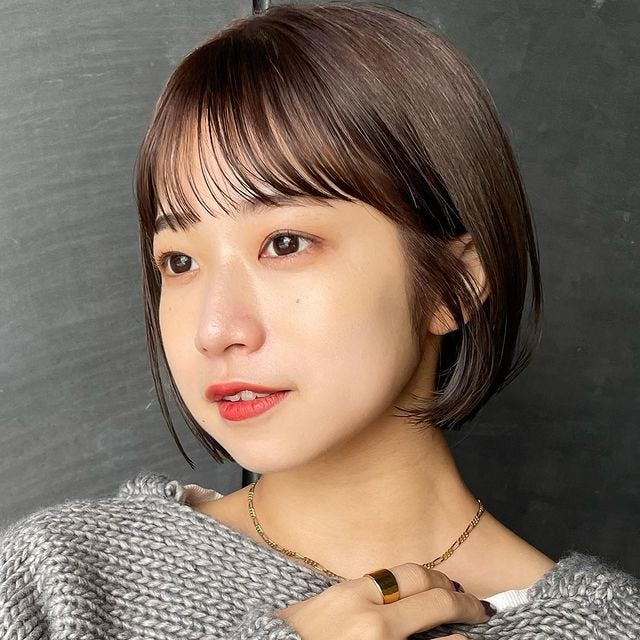 前髪を目元ギリギリにすると目元を強調しやすくなるので、印象が薄いタイプの地味顔さんに似合いやすいんですよ。
