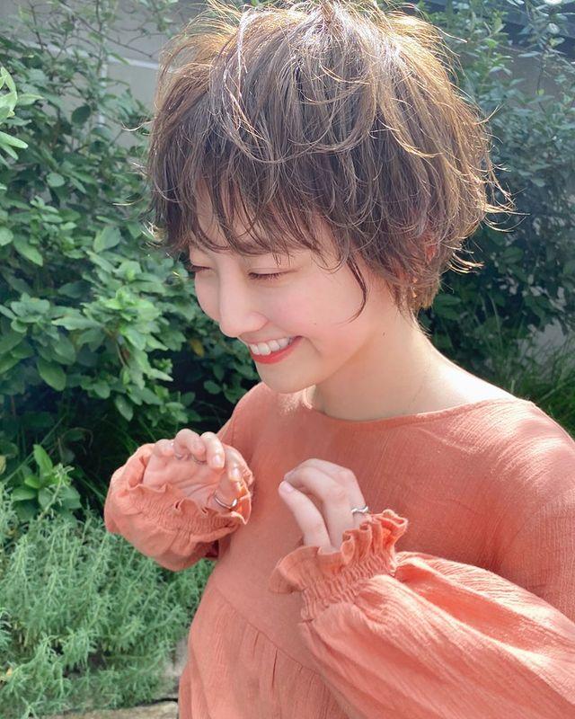 くせ毛風の無造作な仕上がりが大人可愛いマッシュショートも、二重あごに似合う人気の髪型です。