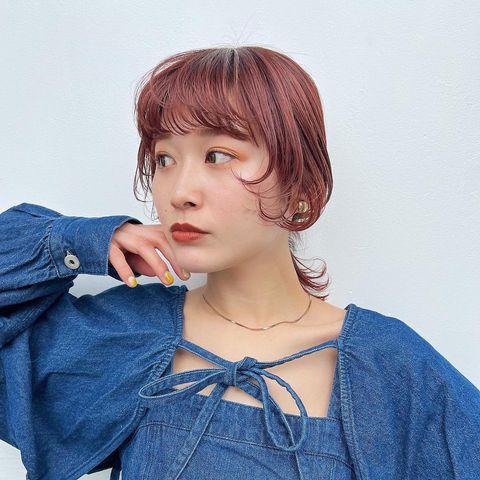 毛先の動きがランダムなショートウルフは、立体感や躍動感がある髪型です。前髪も毛先を流して動きを出しましょう。
