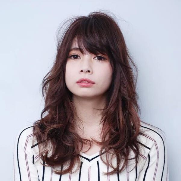 ロングの髪型でも、レイヤーを入れて輪郭を隠すと小顔に見せる効果が期待できます。