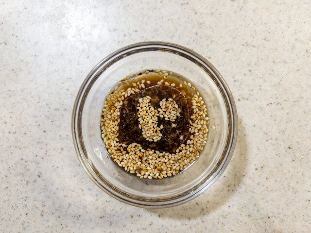 みりん、ごま油、白いりごま、しょうが(すりおろし) 各小さじ1杯