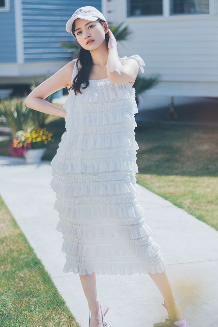 Check!2 フリルたっぷりのワンピをキャップでカジュアルに
