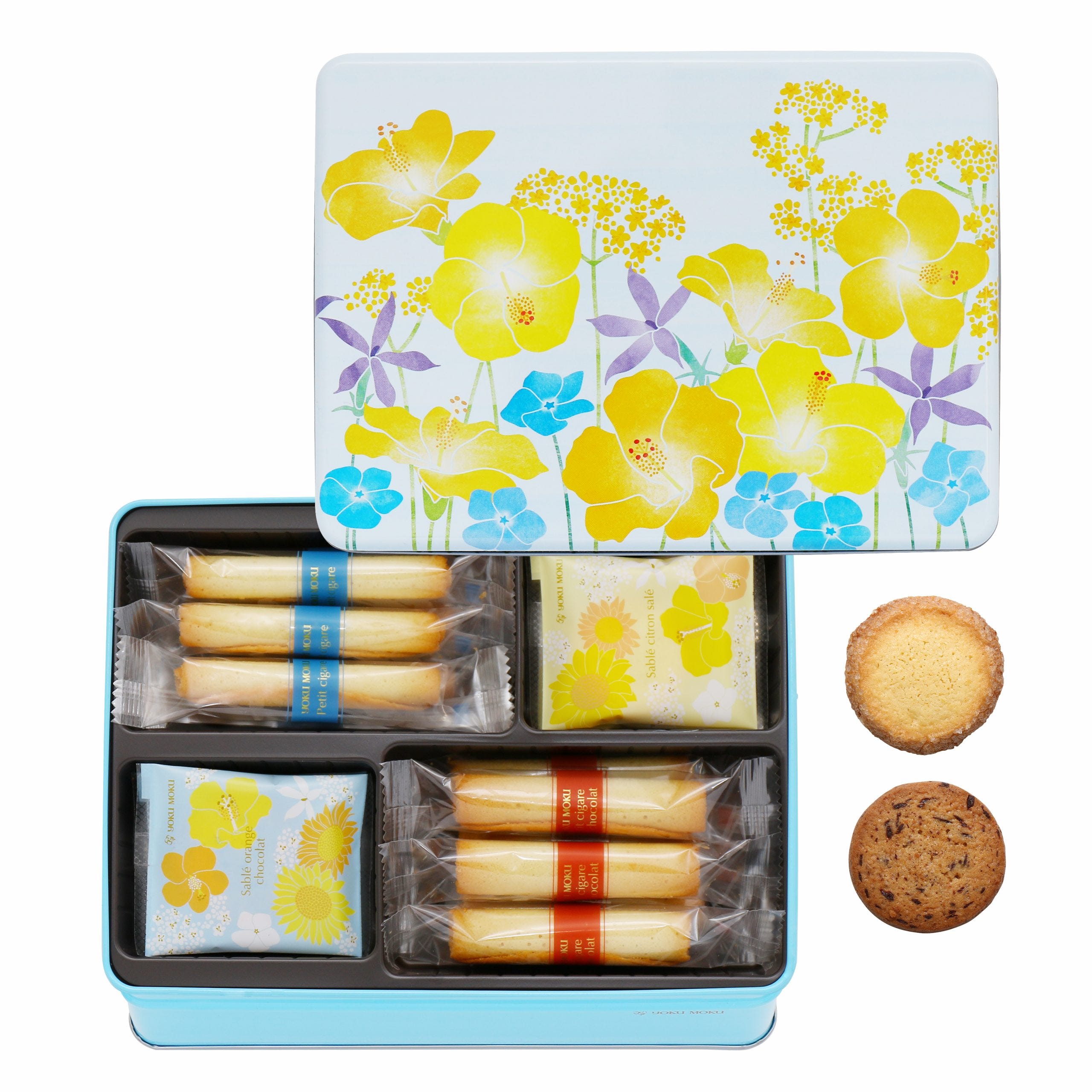 ヨックモックの季節限定のクッキー⽸「カドーシリーズ」は「お花を贈るようにお菓⼦を贈る」をコンセプトに、パッケージに四季折々の花を描いた詰め合わせです。