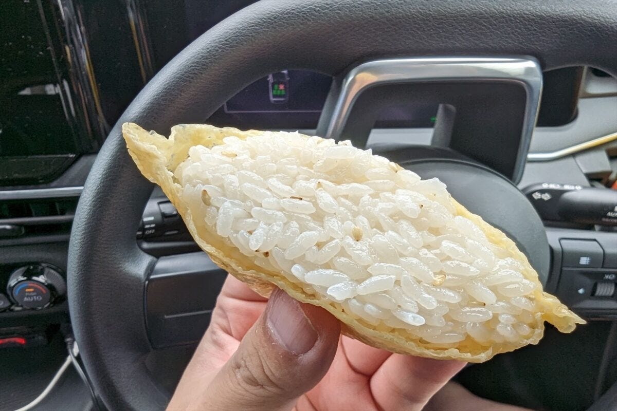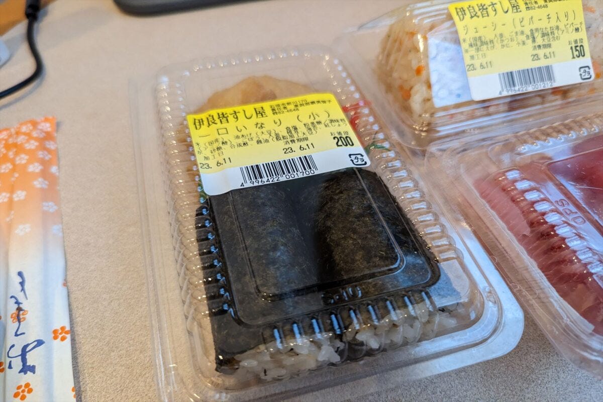 まず、いなり寿司を食べると非常にあっさりとしており、甘みは本土のものに比べて穏やかで、いなり自体にほぼ味もついておらず重さを感じない。