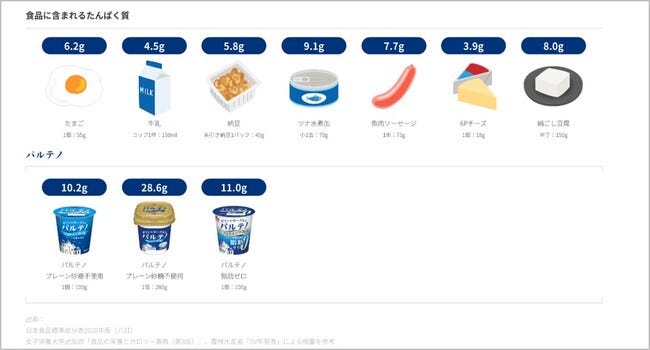 そこで活躍するのが、冒頭で出たギリシャヨーグルト。たとえば「パルテノ(プレーン 砂糖不使用)」では、1個100gで約10gのたんぱく質を手軽に摂取できます。