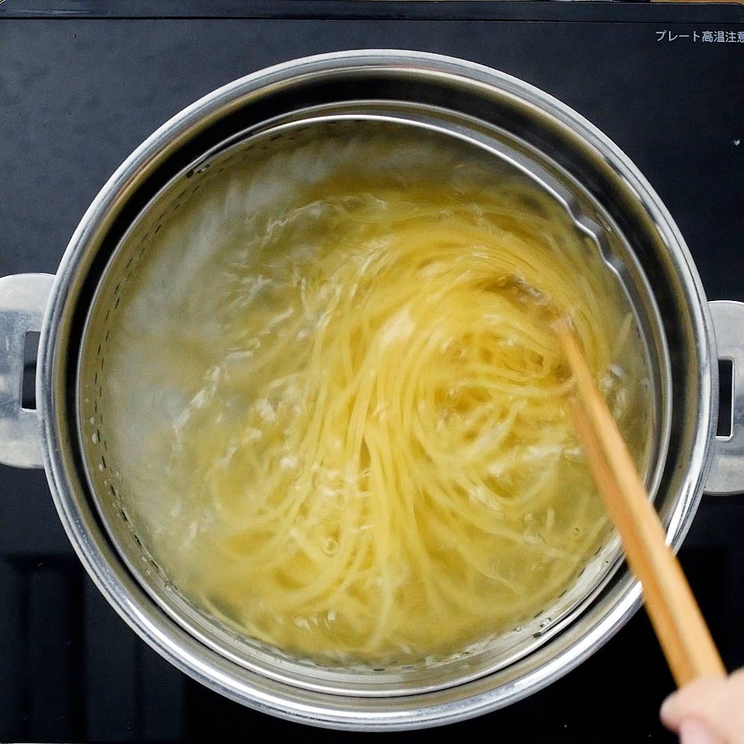 コツ・ポイントスパゲティをゆでる際は、指定された時間通りにゆでるか、少しアルデンテにゆでることをおすすめします。ゆで過ぎるとスパゲティがやわらかくなりすぎてしまいますので、お好みの硬さにゆでて作ってください。