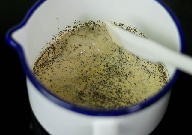 ① 生クリームとアールグレイの茶葉を小鍋に入れ、混ぜながら中火で加熱します。