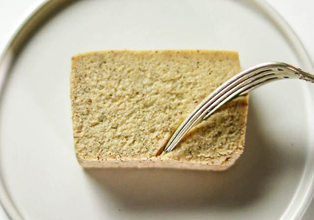 低温で長時間焼くと全体が同じ食感になり、ねっとりとした、焼いているのに半生のような「ベイクドレア」の食感になります。