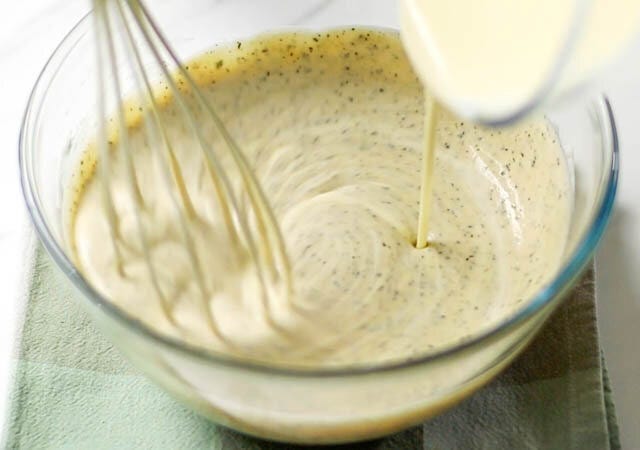⑧ ④の生地に加えてホイッパーで混ぜ合わせます。