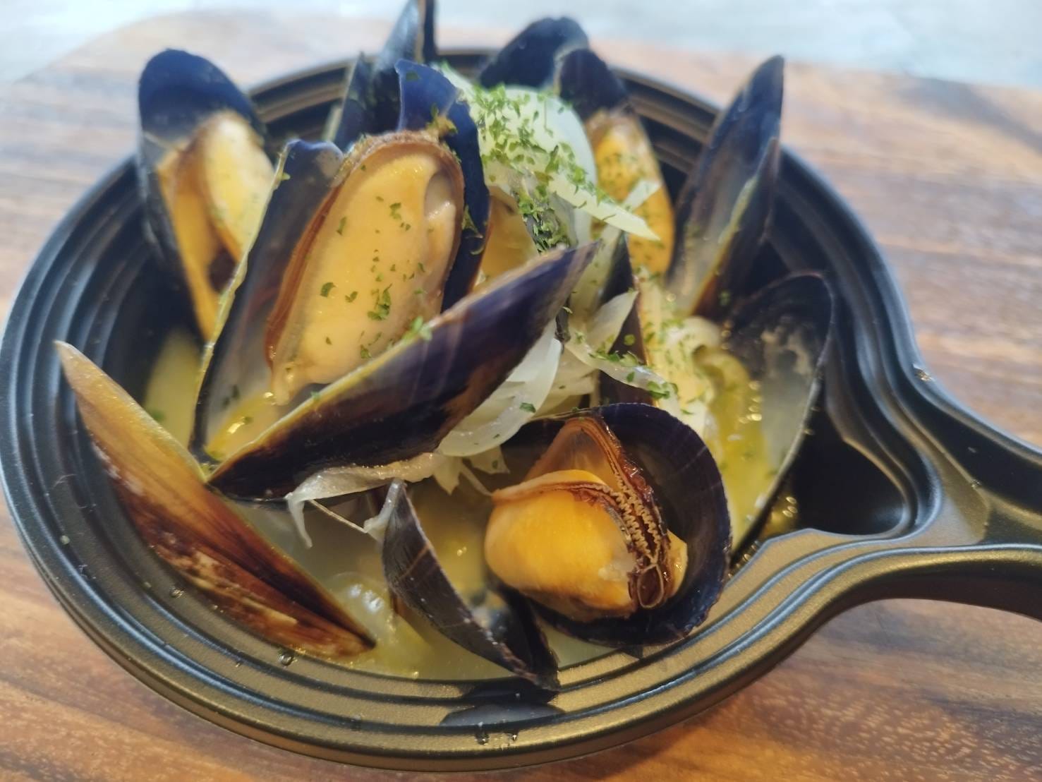スペインバル シドラ「スペイン産ムール貝のシードル蒸し」1人前1,201円 「スペイン産ムール貝のシードル蒸し」や「トマトのシードラ漬け」「スペイン産生ハム」もラインナップ。こちらは料理にもシードルを使っているので、シードル好きならぜひ楽しんでみたいですね。