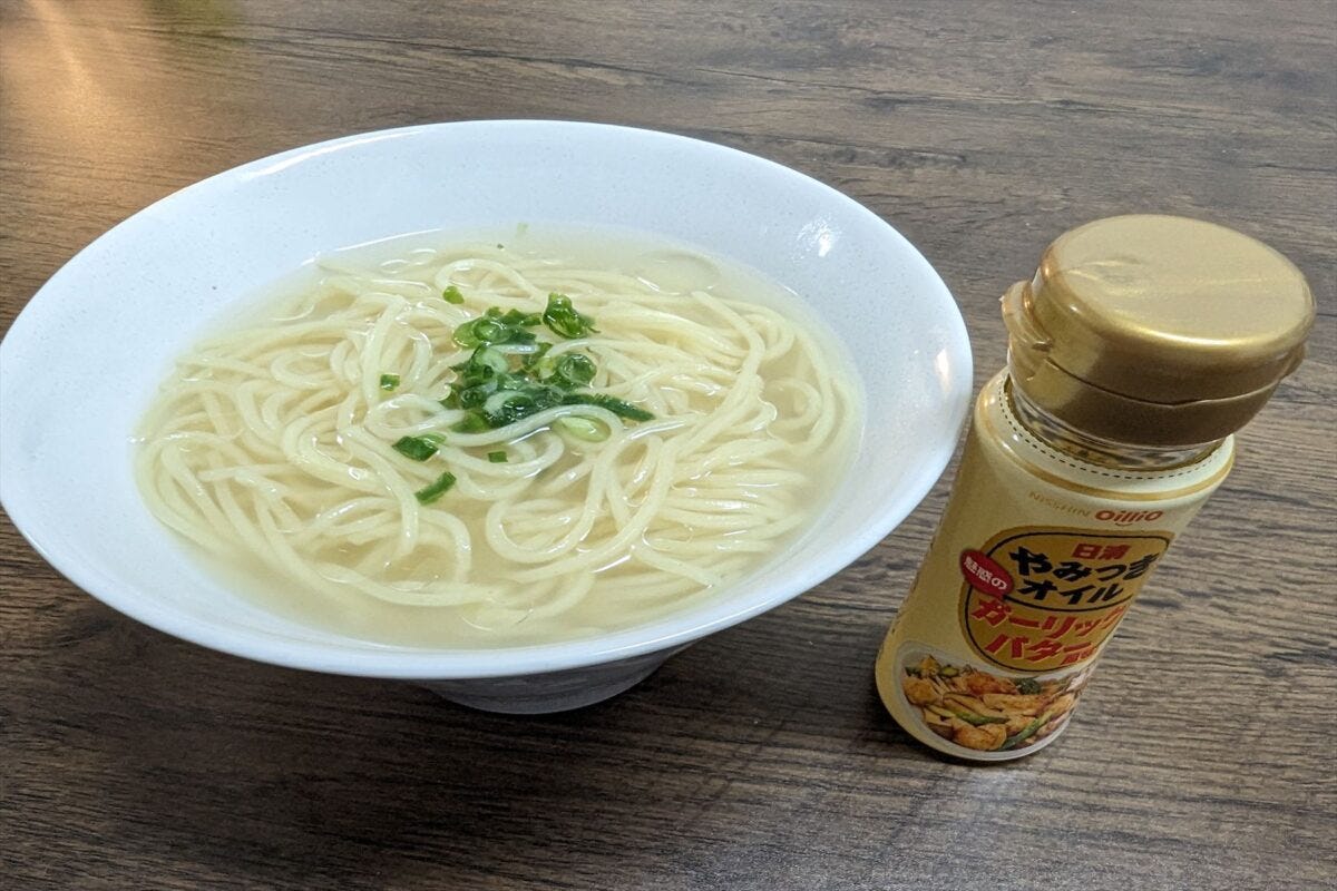 以前は家系ラーメンのプロに味付けオイルを数種類試してもらったが、沖縄そばとの相性はそれ以上だと実感。夏休みになり沖縄旅行に行く人には、ぜひ1本味付けオイル持って行ってほしい。とくにガーリックバターはお勧めだ。