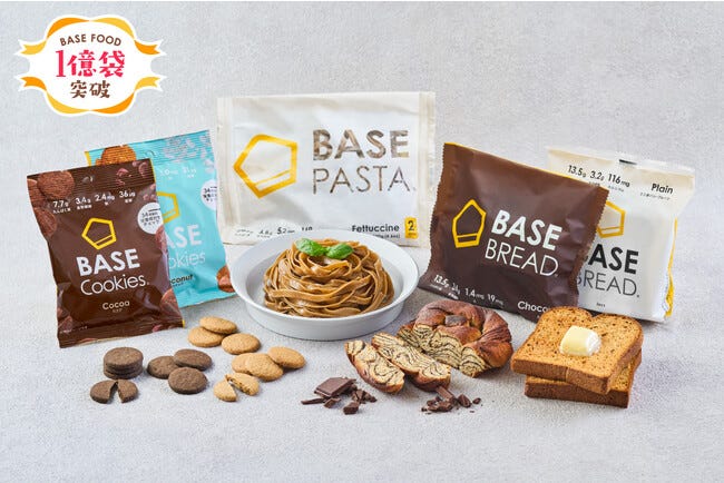 2017年2月の販売開始から、BASE PASTA、BASE BREAD、BASE Cookies、BASE FOOD Deliとシリーズを増やし、累計販売数は1億袋を突破、定期購入者数は20万人を超えました(2023年5月時点)。