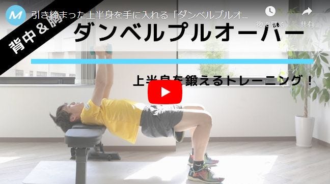 ダンベルプルオーバーの効果を高めるコツ 肩まわりの可動域を大きく使う肩まわりの可動域(関節が動く範囲)を広げていくイメージで行いましょう。どの筋トレでも、可動域を大きくして行うことで効果を発揮します。
