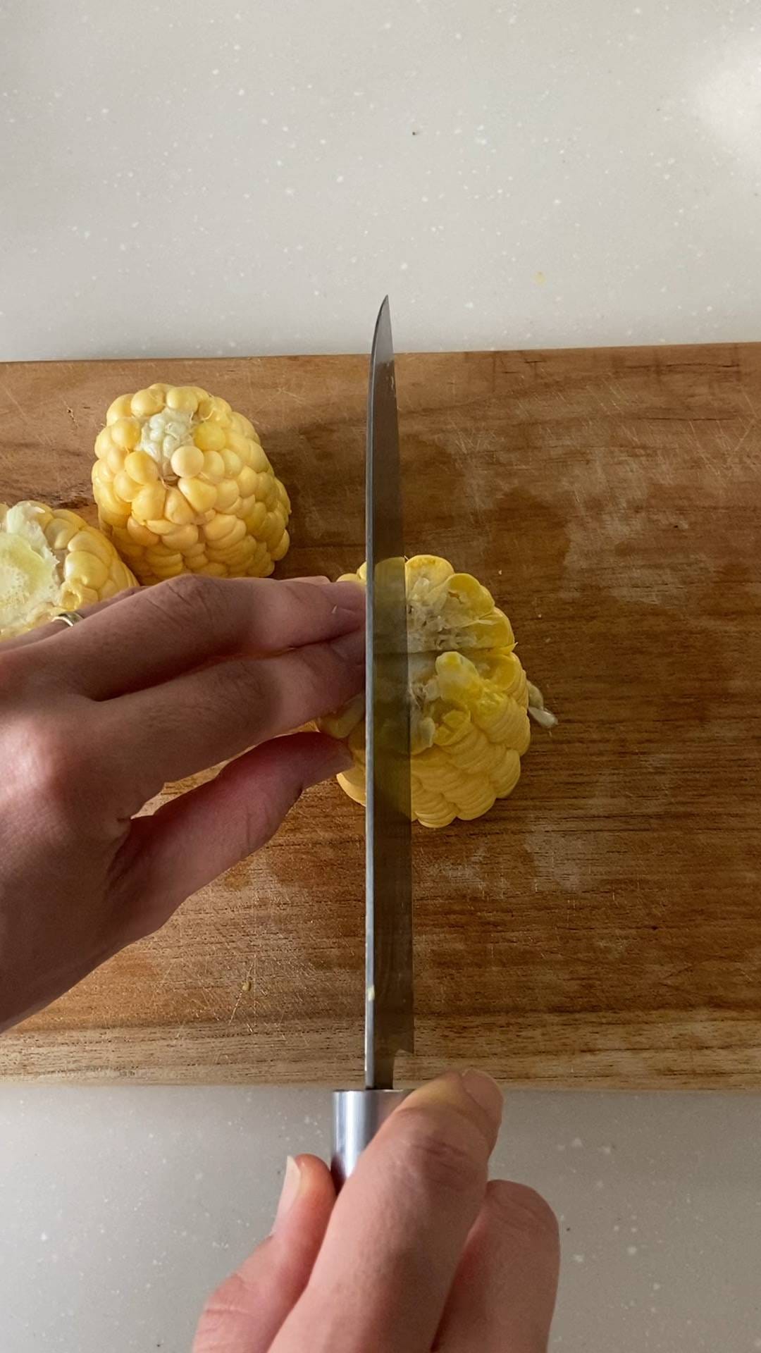とうもろこしを切る