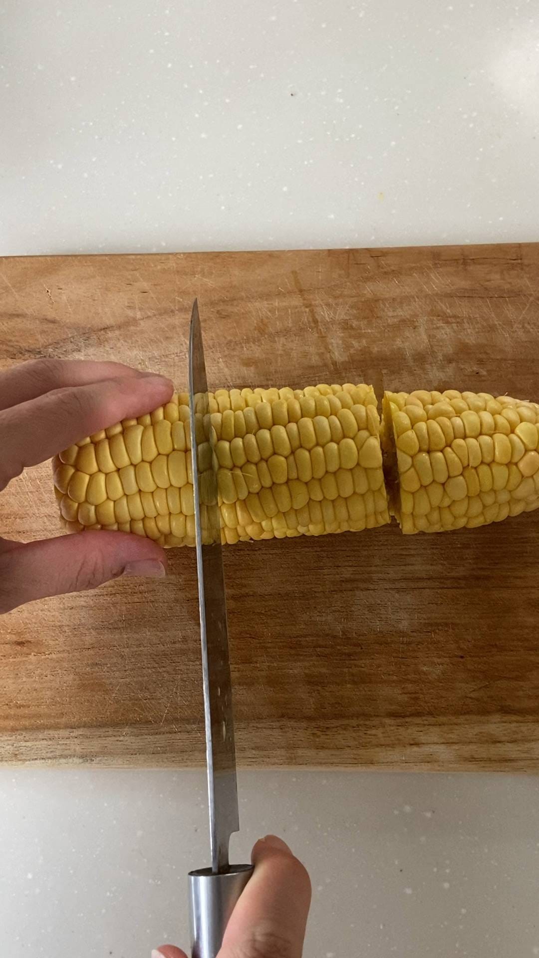 とうもろこしを3等分に切ります。