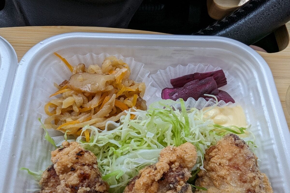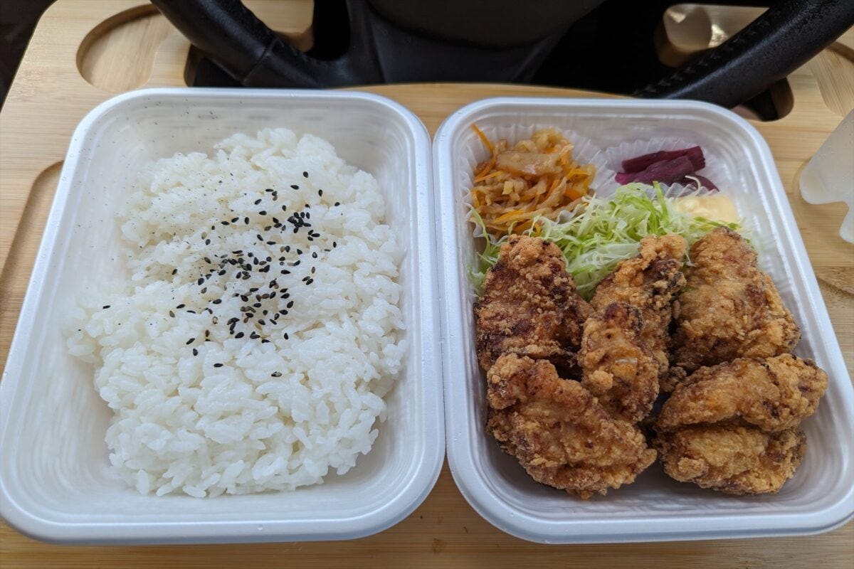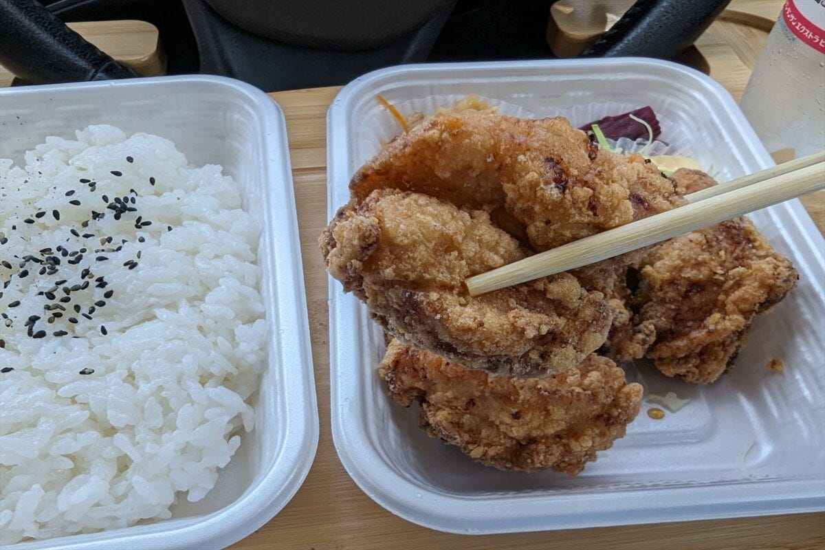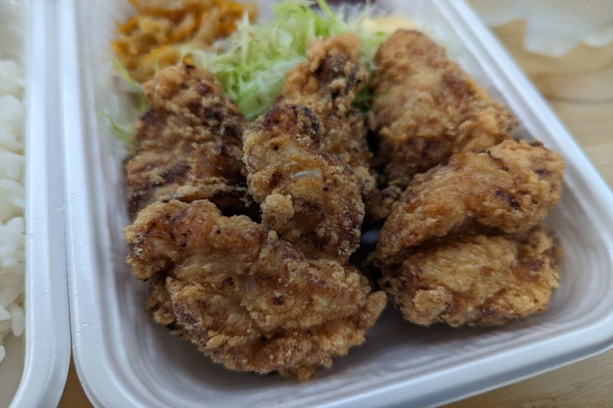 ちょっと驚いたのが、店が位置する場所にあるテナントはほぼ閉店しており、その中でからあげ弁当500円というリーズナブルな価格で頑張っている。Googleのレビュー評価も4.7と、ものすごく高い。