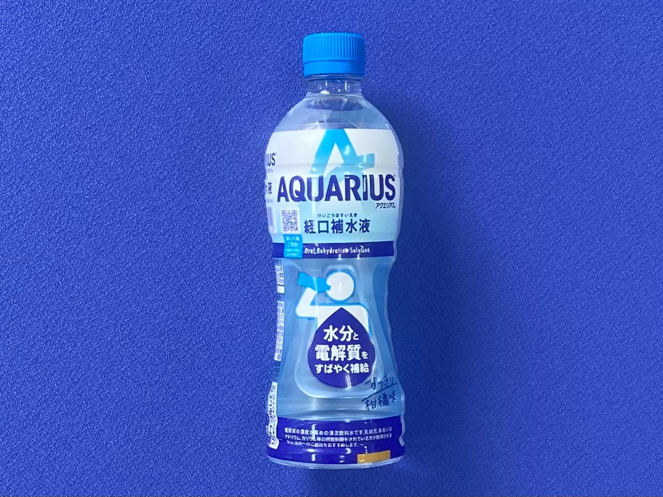 アクエリアスからも経口補水液が出ています。スポーツドリンクよりまろやかで塩気が強い。柑橘味はやや控えめに感じます。ちなみに後述している『OS-1 アップル風味』より薄味でした。