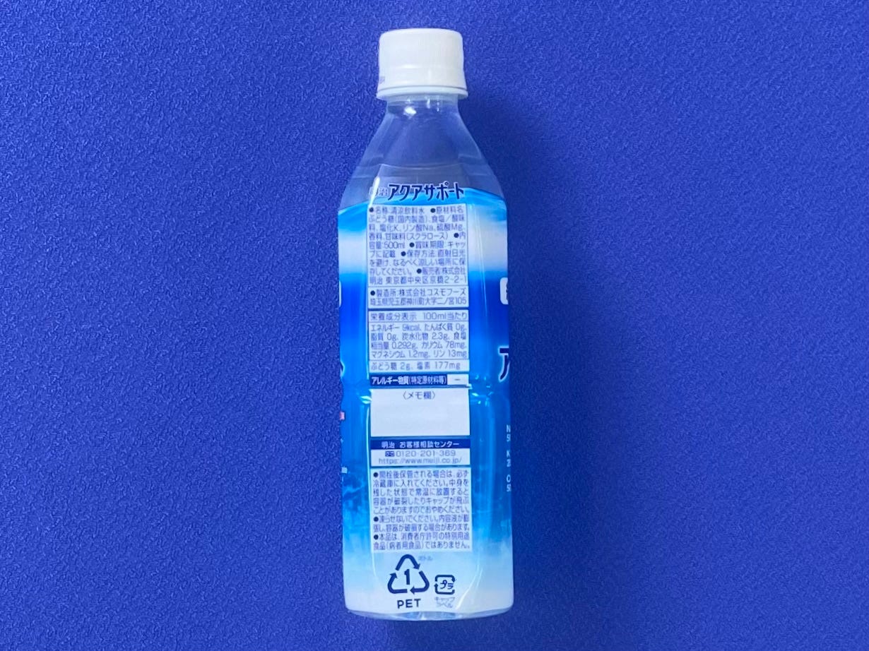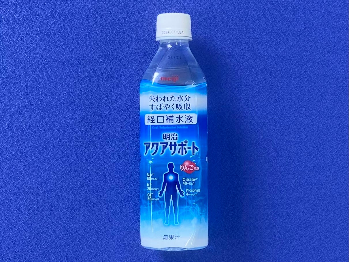 こちらは明治から展開されている経口補水液。砂糖も果糖もなく、シンプルな原材料です。OS-1より塩気は少なく感じました。