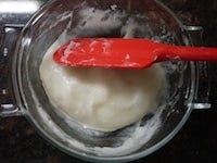 ふんわりとラップをかけ、600wの電子レンジに2分かけます。取り出して、全体をゴムベラでよく混ぜ、さらに600wの電子レンジに2分かけます。