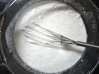 ガラスなどの耐熱容器に白玉粉、砂糖、水を入れ、よく混ぜます。