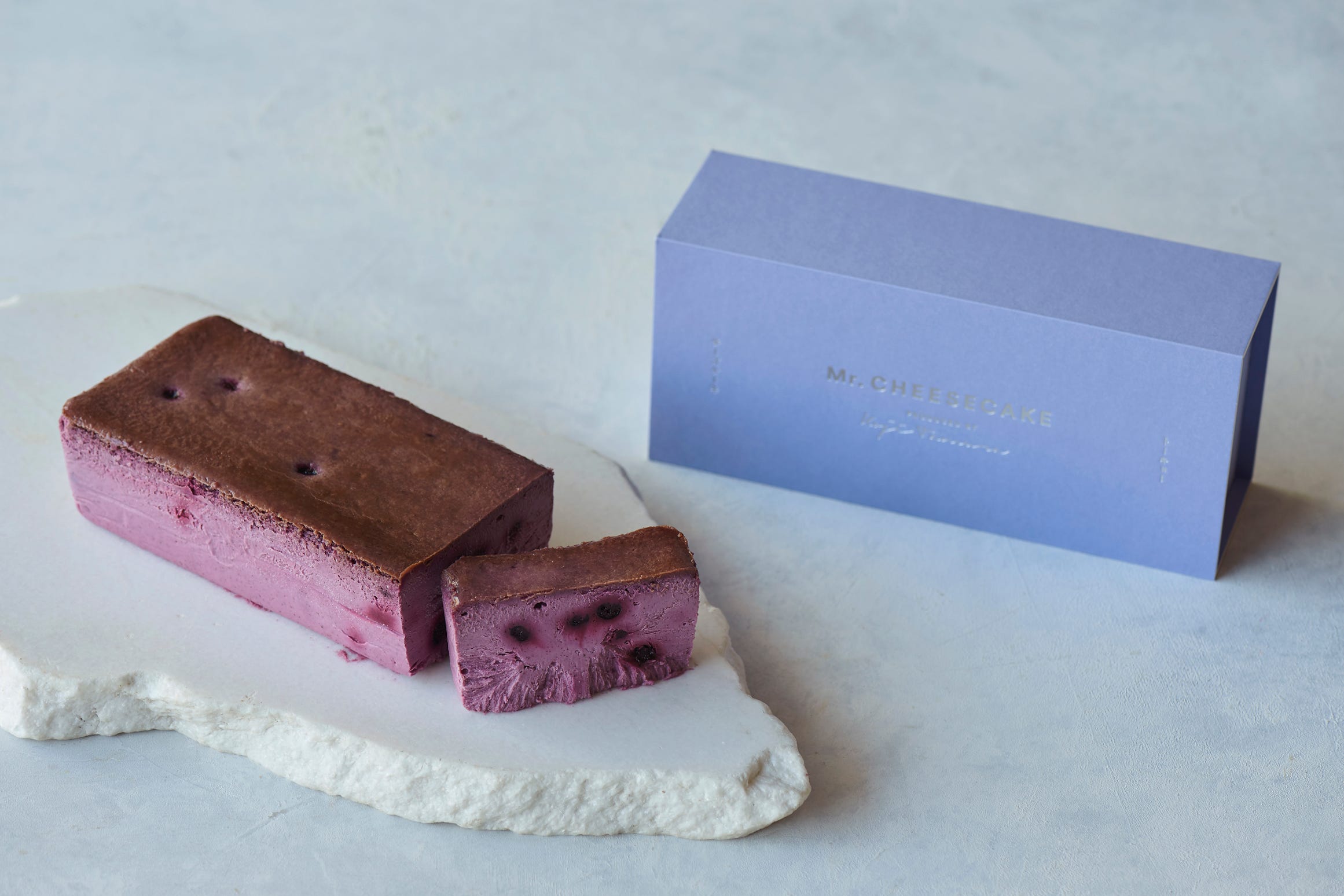 「Mr. CHEESECAKE Blueberry earl grey」5,400円 2023年7月31日(月)まで、夏季限定で登場する「Mr. CHEESECAKE Blueberry earl grey」は、初夏に旬を迎えるブルーベリーに、ベルガモットが放つ爽やかな香りのアールグレイティーを組み合わせた、夏らしいすっきりとしたフレーバーです。