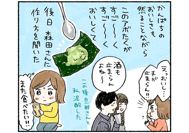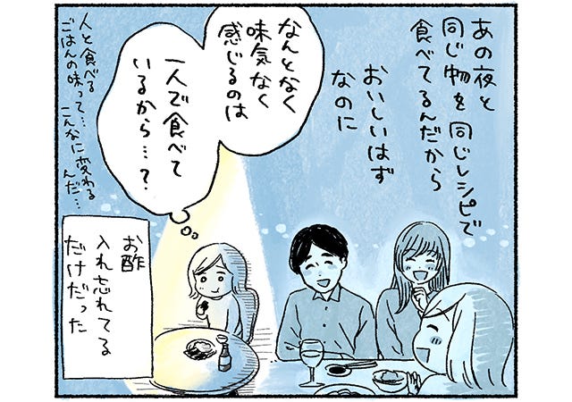 誰かと食べるごはんはそれだけで美味しく感じるもの。美味しさのポイントはお酢…だけではないなと思うミツコさんなのでした。