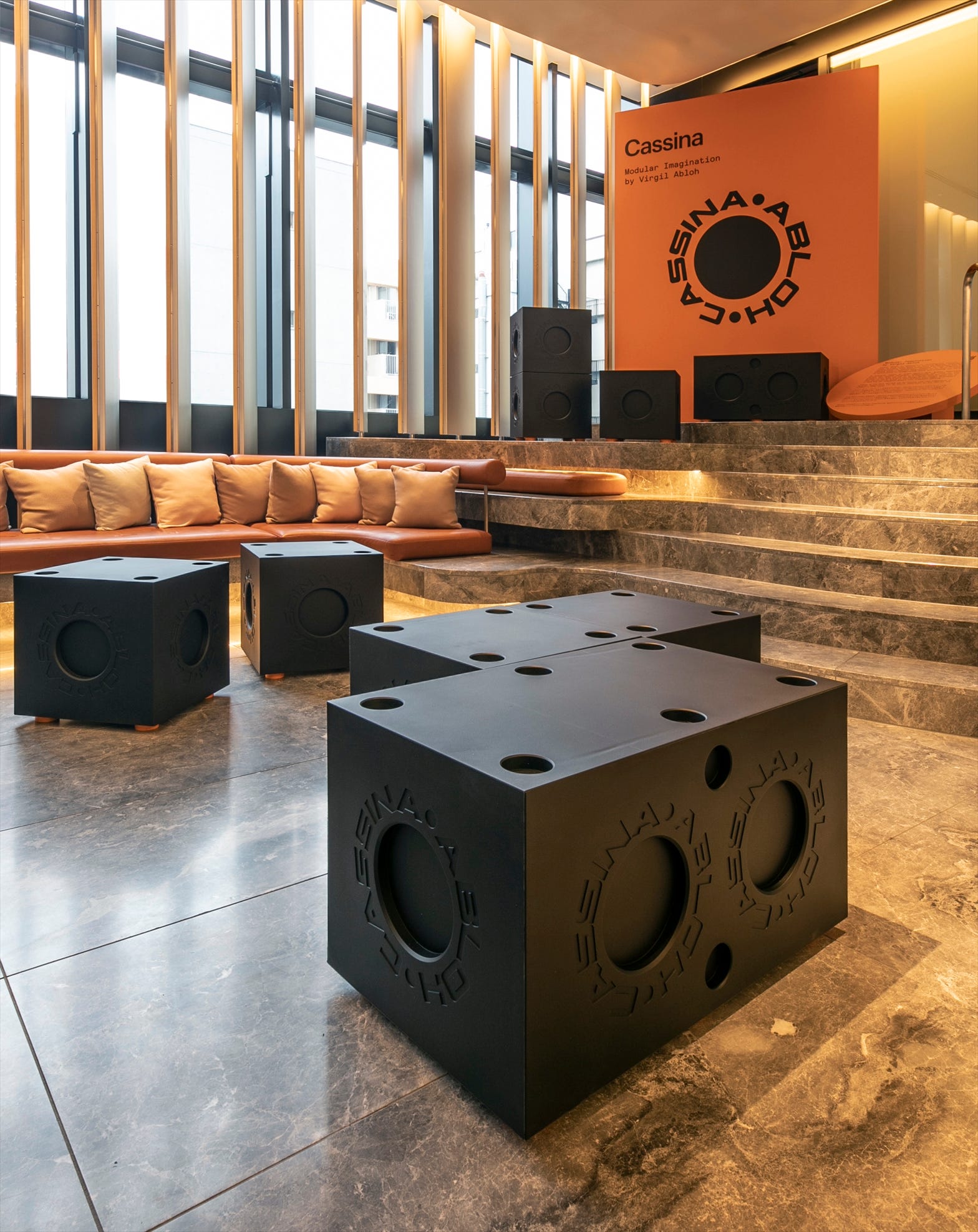 Modular Imagination block by Virgil Abloh – Cassina, Ph.©Valentina Sommariva 2つのサイズのブロックを連結したり重ねたりできるユニークな家具は、硬質でインダストリアルな外観からは想像できないほどソフトな触感。さらに、楽しい夏のひとときを写真に収めることのできるフォトブースも登場します!