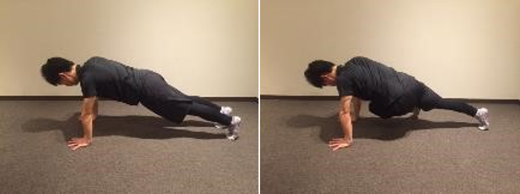 やり方 腹圧を上げた状態で、床に両手とつま先をつけます 膝を胸に近づけてから、もとの位置に戻します。反対側の膝も同じように行います 各25回ずつ、リズミカルに反復します