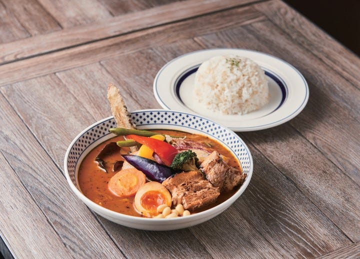 【イベント限定】Rojiura Curry SAMURAI.(南館7F)「炙りチャーシューとみょうがのスープカレー」1,705円※1日10食限定 疲労回復にうれしい豚肉の炙りチャーシューが入った具だくさんの「スープカレー」です。栄養豊富な旬のみょうが揚げの、サクッと軽やかな食感と爽やかな香りを楽しめます。