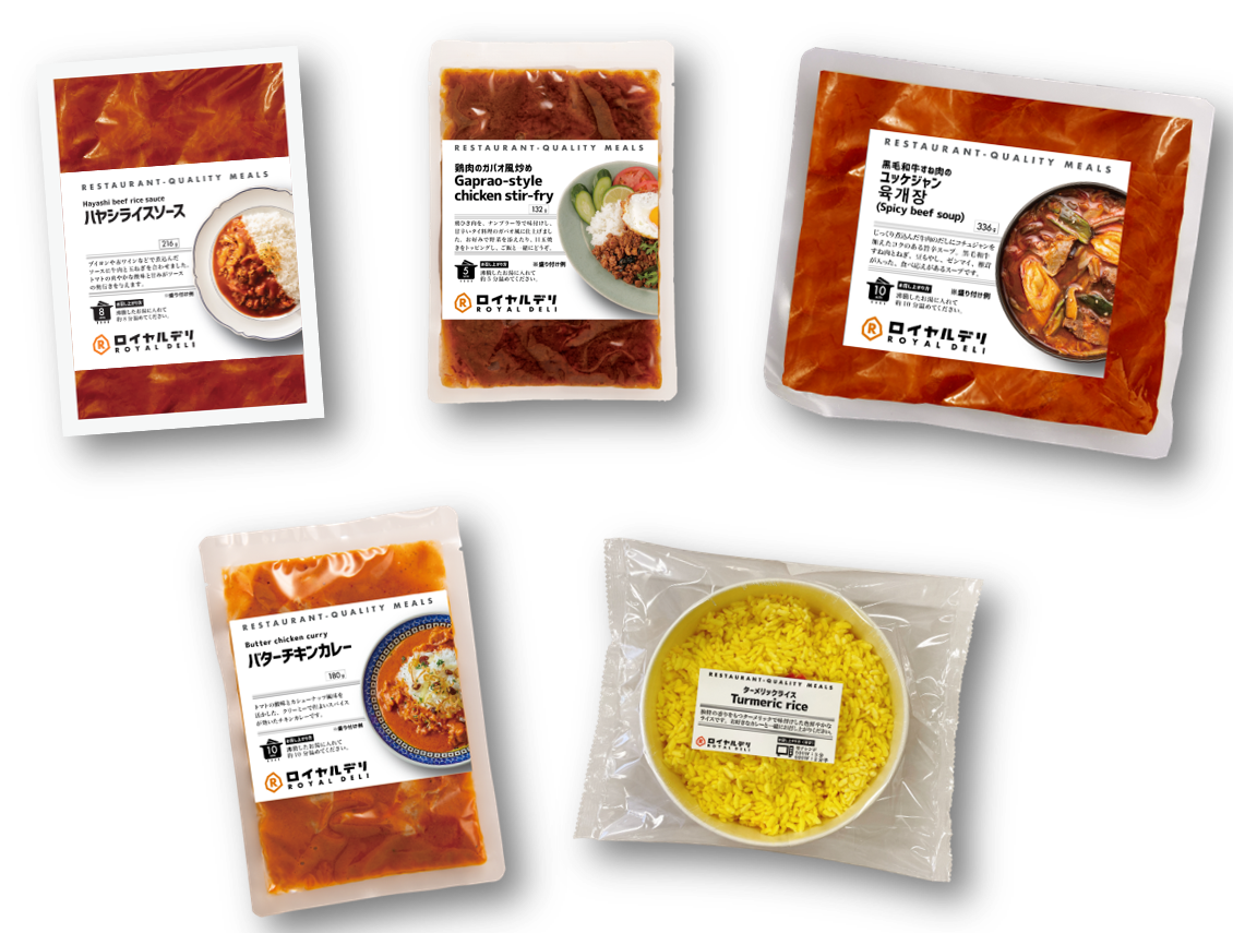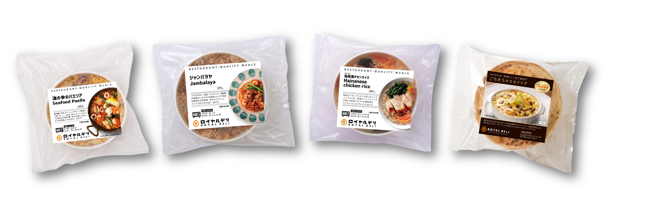 2019 年 12 月から本格展開している、世界中の美味しい料理を取り揃え、ご家庭でもレストランのようなクオリティで、本場の味をお楽しみいただけるフローズンミール「ロイヤルデリ」。