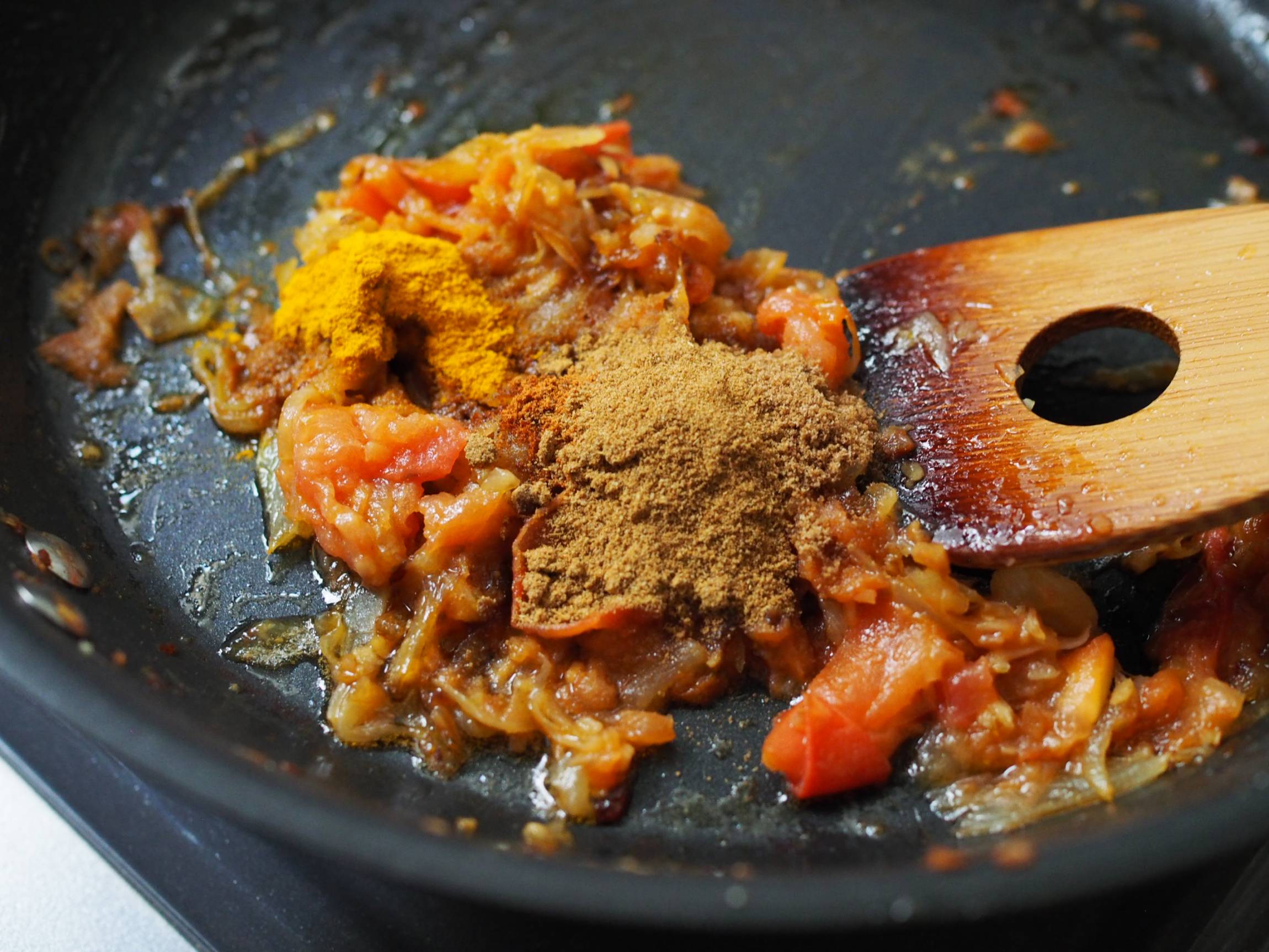 辛くしたい場合はガラムマサラやカイエンペッパーを追加
