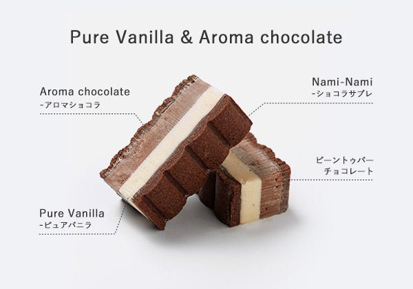 「Gelato Koki × Nami-Nami」は、サクサク食感が楽しいサブレに、“香気”をテーマにしたシェフこだわりのジェラートを2 層に重ねてサンド。ひとつのボックスに、ショコラサブレ・プレーンサブレ・抹茶サブレの3種が2本ずつ入っています。通常の「Nami-Nami」より小ぶりで、こどもでも食べやすいサイズになっているのもうれしいですね。