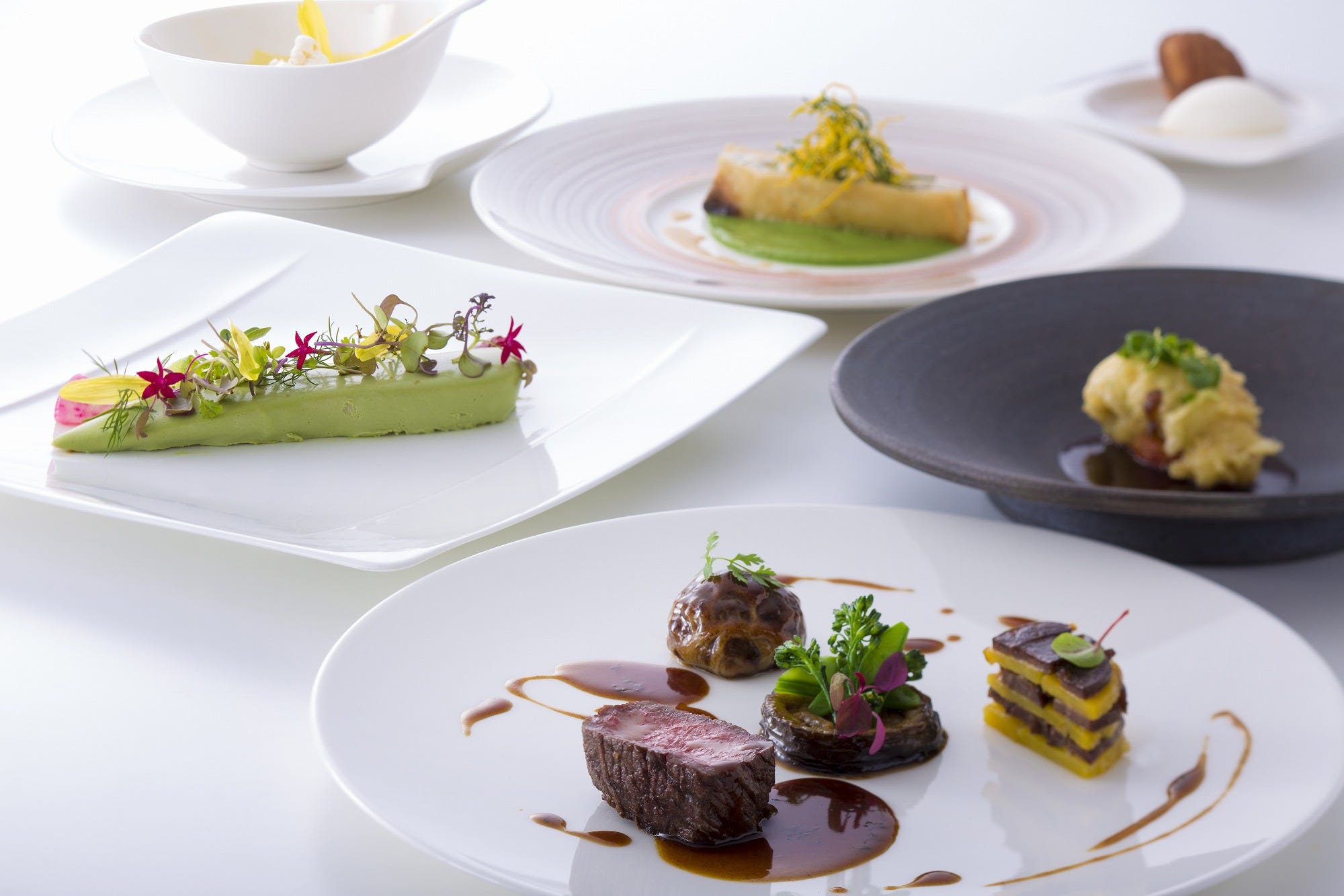 神戸ポートピアホテル「ディナーコース」15,000円 淡路の鱧、瀬戸内の鮮魚、神戸ポーク、丹波のジビエ“夏鹿”、そして旬の野菜や果実。それぞれの特長を活かした調理法、絶妙のソース、美しい盛り付けで仕上げます。こちらも9月はメニューが変わるので、お見逃しなく!
