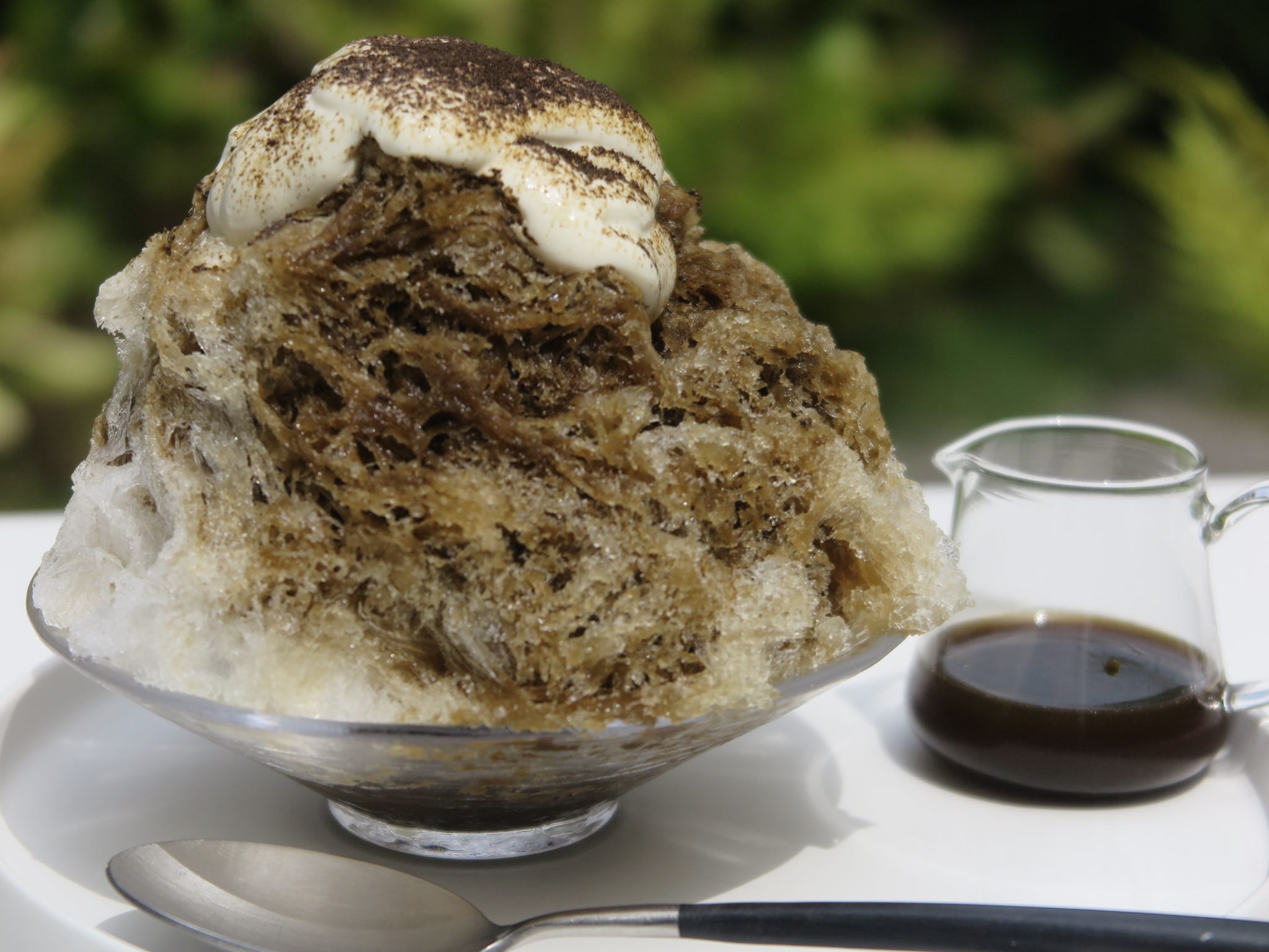 「ほうじ茶 × ティラミス かき氷」1,500円(税サ込)/提供期間:2023年7月12日(水)~8月27日(日)/提供時間:14:00~17:00 京都・宇治の「丸久小山園」のほうじ茶と、ティラミスを組み合わせた新感覚のかき氷です。ほうじ茶をエスプレッソのように濃く抽出し、マスカルポーネクリームと合わせることで、ティラミスのような濃厚でコク深い味わいに。