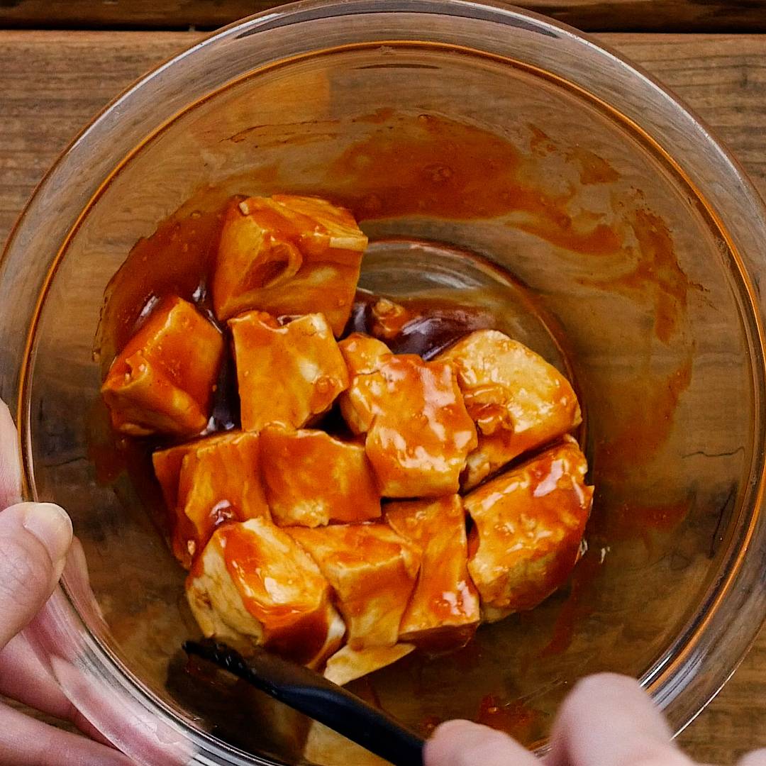 豆腐は崩れやすいので、しっかりと水切りをしてから調理してください。
