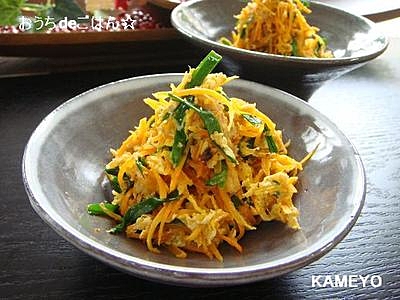 かめ代のおうちdeごはん☆ にんじんとねぎのしりしり風♪3分おつまみ☆