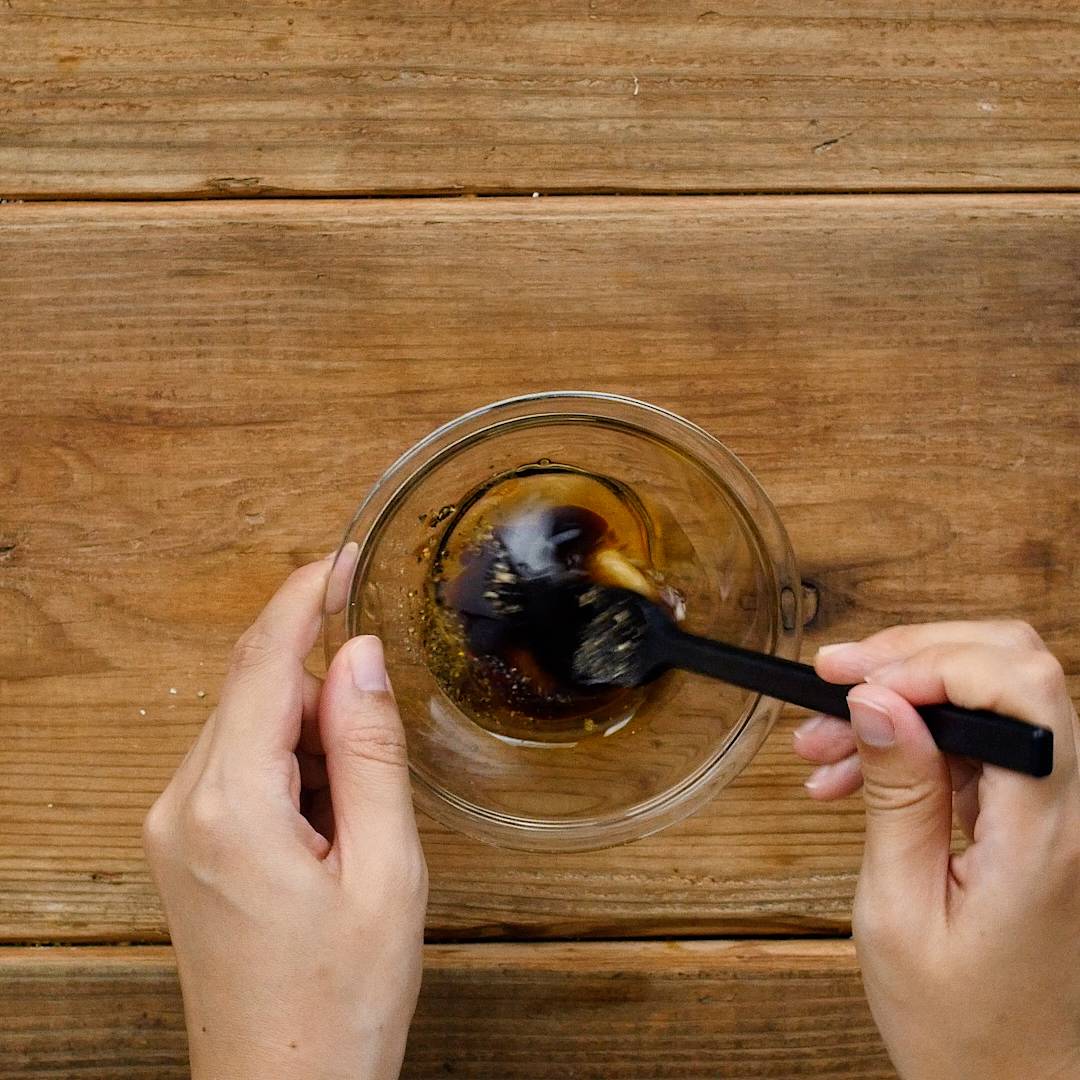 ドレッシングはオイルが乳化するまで混ぜ合わせてください。