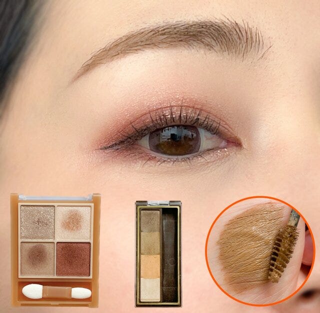 目元を明るくしたら眉もほんのり淡く、ピンクブラウンで整えてあげると統一感が出ます。アイブロウマスカラもココアブラウンやモーヴピンクで染めてあげると良いですよ。