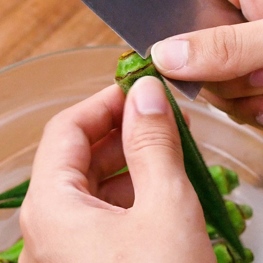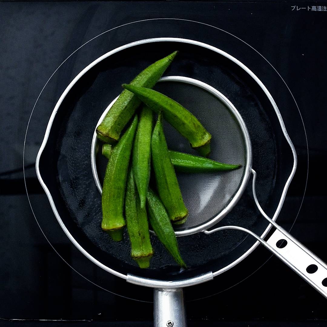 コツ・ポイントオクラは板ずりをすることで、舌触りがよくなり、色も鮮やかに仕上がります。