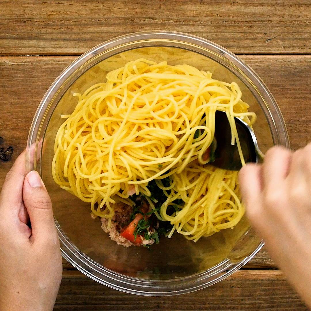 ツナとトマトのピリ辛冷製スパゲティ